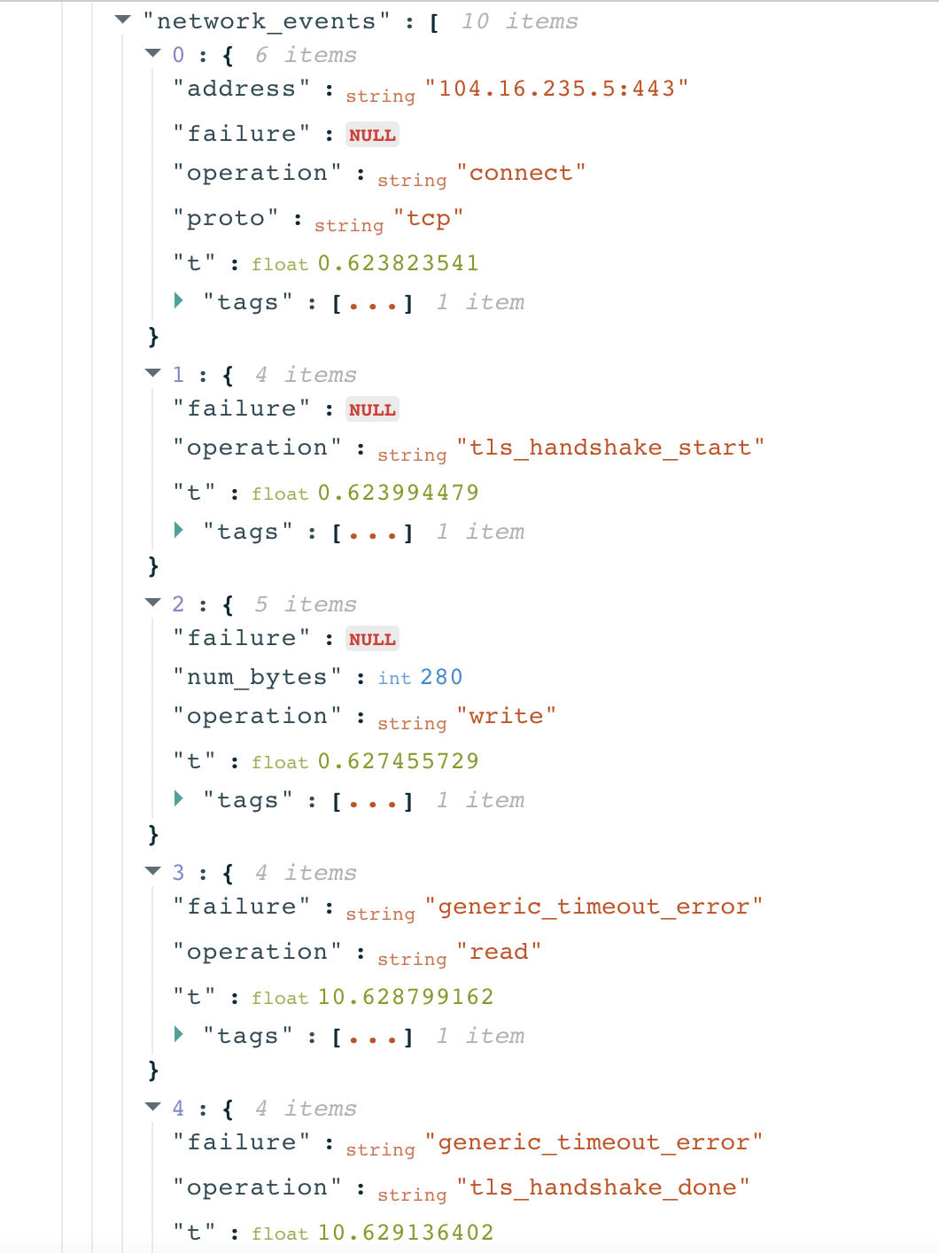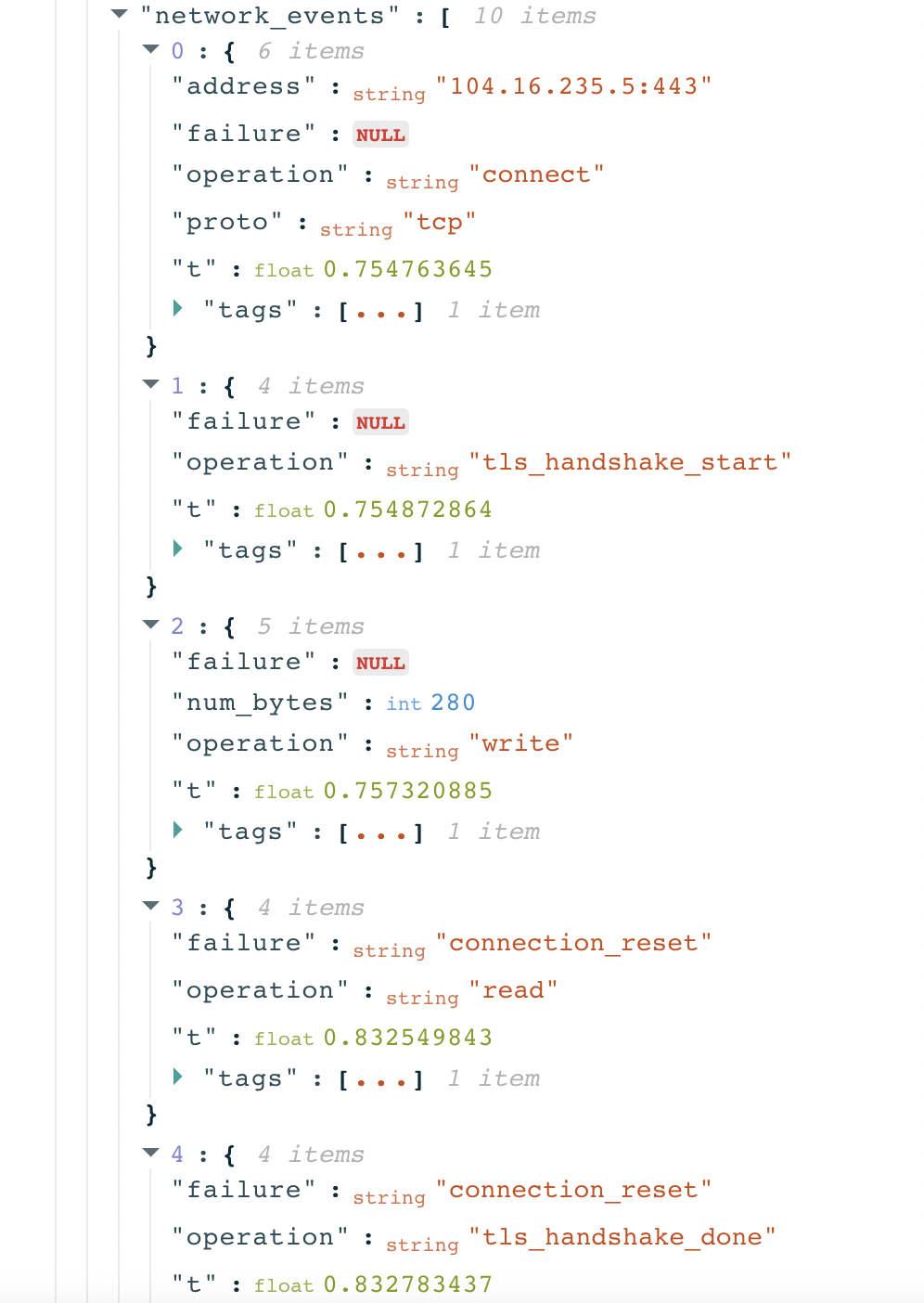 As part of OONI’s analysis for this report, anomalous Grindr measurements were aggregated based on failure types to evaluate if they are consistently present (or if the types of failures vary), as a more consistent failure type (such as a connection\_reset error) observed in a larger volume of measurements provides a stronger signal of blocking. We also analyzed the network information from TLS handshake data in these measurements to evaluate whether the errors were a result of TLS based interference.
