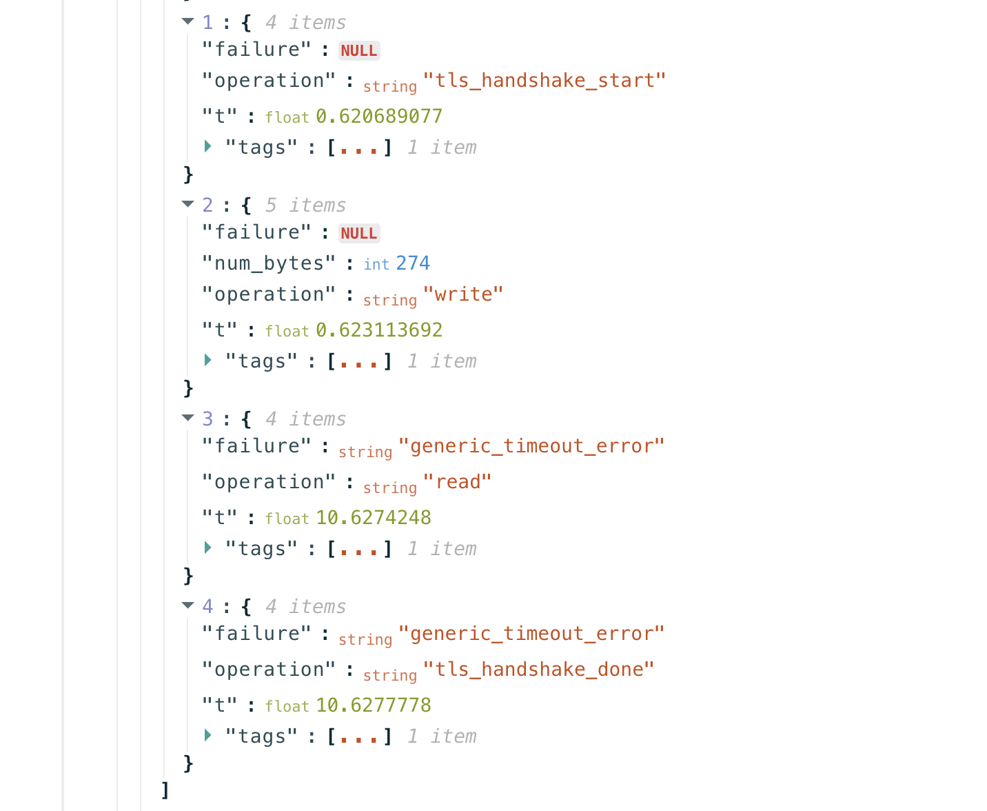 Для этого нам нужно было проанализировать информацию из данных о TLS-рукопожатии в этих измерениях, чтобы оценить, были ли ошибки результатом помех, связанных с TLS. Например, измерение может показать, что DNS-сервер возвращает правильные IP-адреса, что можно установить соединение с полученными IP-адресами, но сессия TLS-рукопожатия завершается после первого сообщения ClientHello (которое является незашифрованным), что приводит к ошибке “generic_timeout_error”. Хотя мы считаем, что такое измерение показывает признаки потенциального TLS-вмешательства, мы не будем делать выводы только на основании одного измерения.
